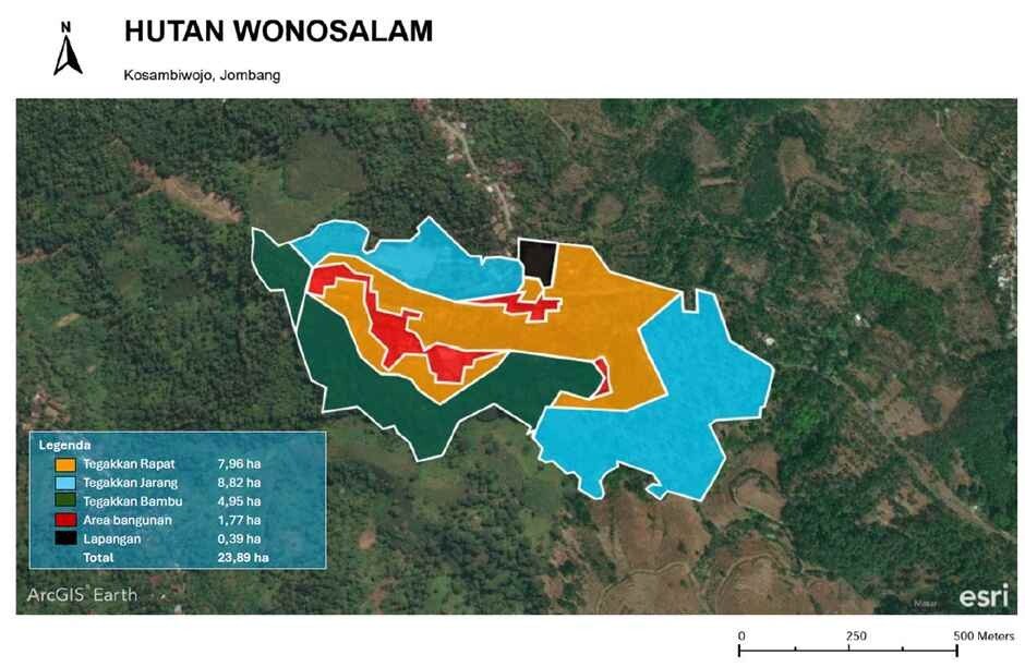 BP CAI Wonosalam merupakan area hutan rakyat seluas 23,89 hektar, dengan variasi tutupan vegetasi 21.73 ha terbagi dalam tegakan rapat, tegakan jarang, bambu, serta area terbuka dan bangunan. Melalui survei vegetasi dan pengukuran cadangan karbon menggunakan pendekatan allometrik, LDII mencatat potensi cadangan karbon sebesar 17.408 ton CO₂e, atau sekitar 801 ton CO₂e per hektar.