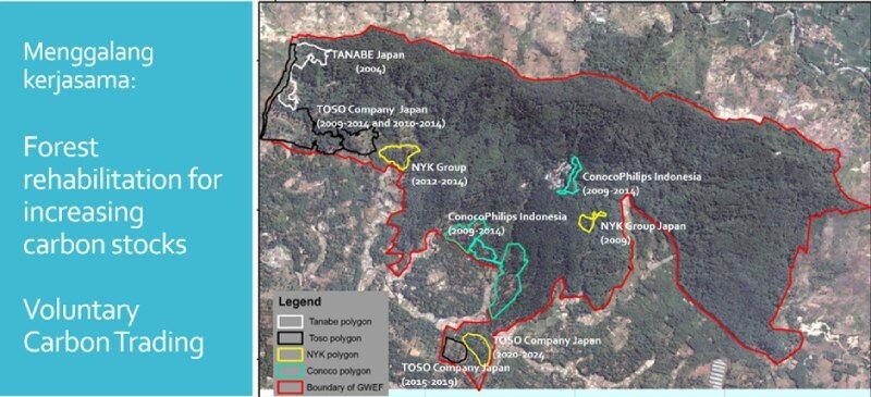 Pada tahun 2004 IPB menawarkan kepada Perusahaan Tanabe Jepang untuk bekerjasama merehabilitasi lahan yang kosong dengan skema perdagangan karbon berbasis voluntary. Skema ini mewajibkan pihak IPB menanam pohon pada areal yang masih kosong dan setiap tahun melaporkan jumlah karbonnya kepada perusahaan dan sebagai imbalannya perusahaan memberikan kompensasi dana atas karbon yang sudah diperoleh. Mulai tahun 2009, perusahaan-perusahaan yang lainnya menysul yaitu: Toso company, Jepang, NYK Group Jepang dan Conoco Philips Indonesia.