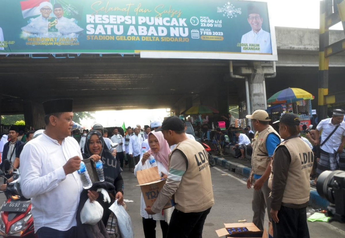 LDII ikut membagikan air mineral kepada para peserta Harlah 1 Abad NU. Foto: LINES.