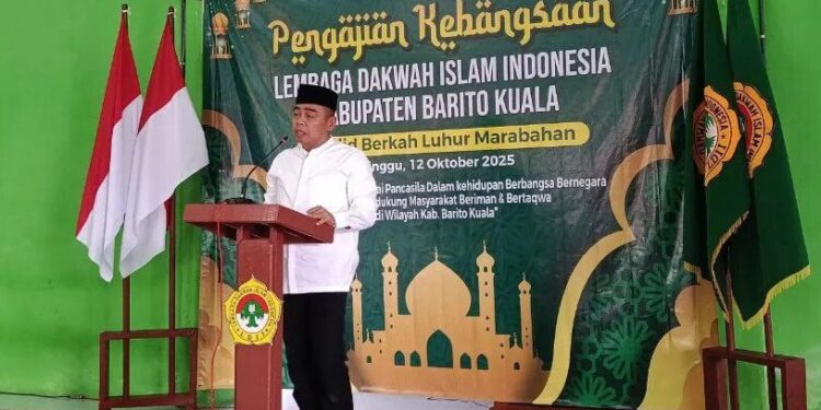 Ketua DPD LDII Kabupaten Barito Kuala, Agung Aprianto menyampaikan penguatan kebangsaan lewat penanaman nilai Pancasila menjadi penting di tengah tantangan zaman dan derasnya arus informasi global. “Pancasila bukan hanya dasar negara, tapi juga pedoman moral kehidupan bermasyarakat. Pengajian ini menjadi komitmen bersama menanamkan nilai-nilai religius, toleran, dan nasionalis sehingga selalu damai untuk kemajuan bangsa,” ujarnya.