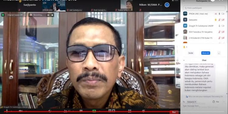 Pada webinar tersebut, Prof. Singgih yang merupakan ahli sejarah dari Fakultas Ilmu Budaya, Universitas Diponegoro menyampaikan materi tentang ‘Bahasa Indonesia, Pancasila, dan Pondasi Civilization-State’